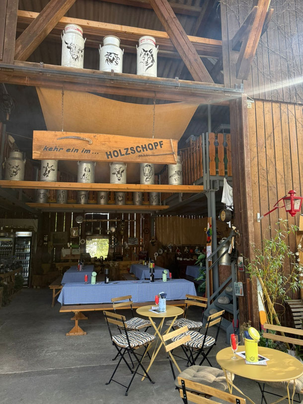Im Holzschopf sind Milchkannen mit verschiedensten Motiven erhältlich.